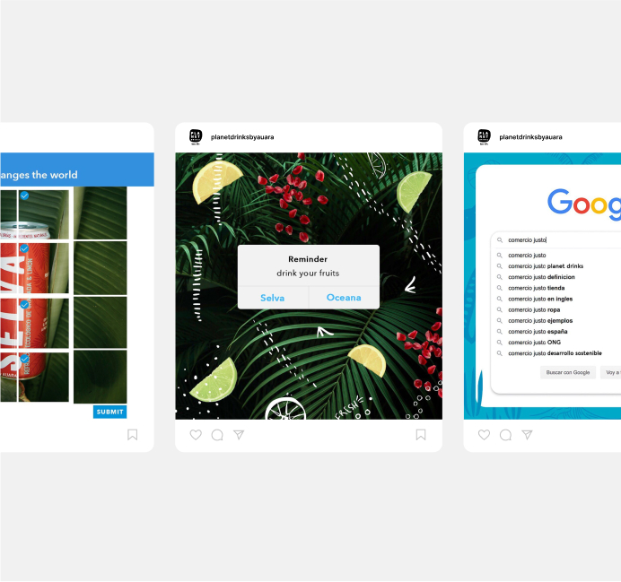 En esta fase de crecimiento inicial, surge la necesidad de promocionar la nueva línea de productos y de generar y fortalecer la relación con el cliente final. Mediante el planteamiento, desarrollo y ejecución de un spot de campaña, se define una marca única, sólida y clara, relevante y creíble, para descubrir por qué se crea Planet Drinks y las bondades de la misma con un tono de voz cercano, directo y que transmita muy buen rollo. Todo ello sin dejar atrás la esencia AUARA y sus valores como marca.