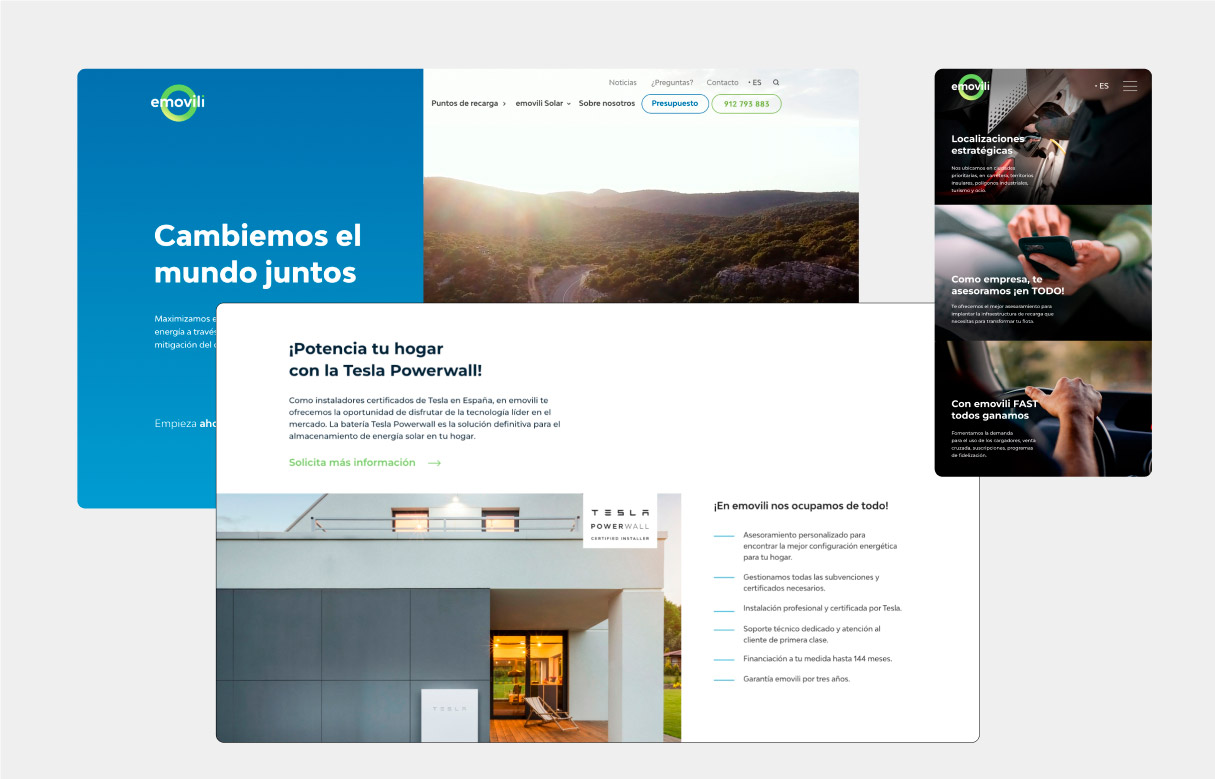 Emovili es una empresa de instalación de puntos de recarga y paneles solares, cuya imagen de marca había quedado desfasada tras el proyecto de abrir una nueva línea de negocio. Por ello, se les justificó la necesidad de desarrollar un rebranding completo para que la marca fuera moderna, versátil y se adaptara fácilmente a las nuevas y futuras necesidades del mercado.